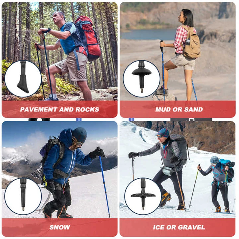 Ny fibre fibre karbonina dia ny pole Pole, Outdoor Custom Logo 3-Fizarana Telescopic Trekking Hiking Hiking Manufacurer Aluminum 7075 mandeha amin'ny tsato-kazo mitsangantsangana.
