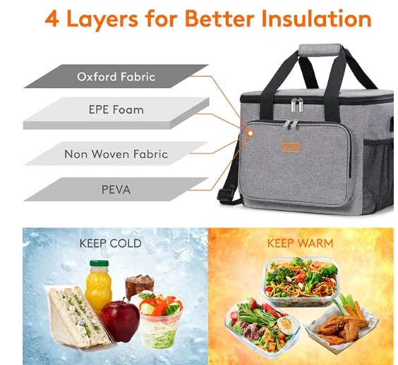 Kitapo picnic, kitapo antoandro dia vita amin'ny fitaovana insulated izay afaka mitazona sakafo sy misotro mangatsiaka na mafana mandritra ny 5 ora. Ankoatr'izay, ny lining ao anatiny dia vita amin'ny fohoralin'ny vatosoa-nao mba hahafahanao mametraka ny sakafonao ao anaty kitapo tsy misy ahiahy. Ny Foam Epe 6MM ao amin'ny EPE 6MM dia manome fiarovana lehibe amin'ny fitoeran-droa, sakafo sy zava-pisotro.