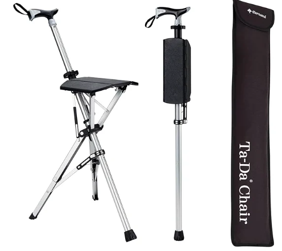 Ny lehilahy antitra dia alpenstock fefy felana, miala sasatra ary tehina an-tongotra ho fanohanana. Ity famolavolana ity, izay manova ny hazo fitsangatsanganana amin'ny seza misy snap, dia manolotra fialan-tsasatra amin'ny tongotra reraka sy ny lohalika amin'ny fanamarihana vetivety.