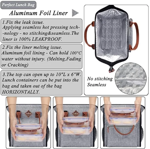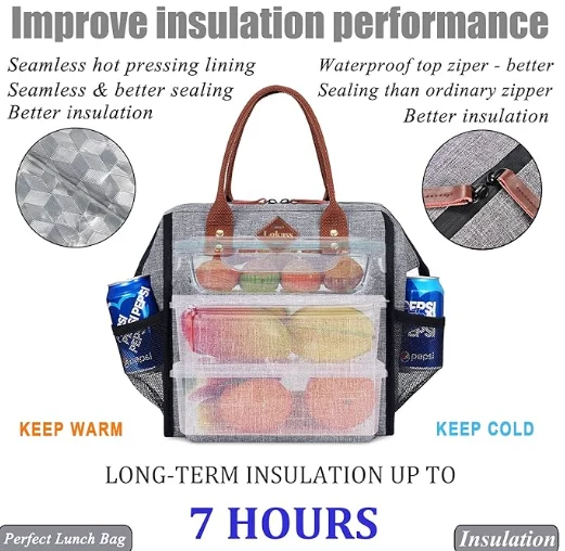 Ny aluminium ny aluminium foil mangatsiatsiaka dia ny lining dia porofon'ny 100% hipoka, mora manadio ary tsy ho ketraka mora foana. Ny lamba Nylon dia ny ahiahy rano ary ny zipper ambony dia rano. Ny fiasa amin'ny rano sy ny fisonosanana an'ity kitapo sakafo antoandro ity dia tena tsara.