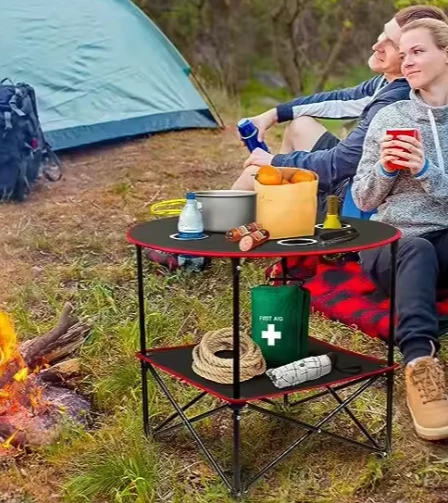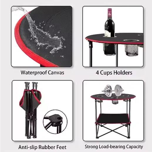 Latabatra fisakafoanana any ivelany. Ny latabatra kanvas eo ho eo dia tsy afaka ampiasaina ao anaty trano fotsiny fa ho an'ny toby, ny jono, ny morontsiraka, ny pikantsary, ny fandriana ozyu outdoor. , Fanalahidy, sns, izay mahatonga ny sokitra mandritra ny hetsika any ivelany mora sy madio. Eo amin'ny ambaratonga ambony amin'ny latabatra, misy terena hafa ho an'ny toerana fanampiny hihazona sakafo.