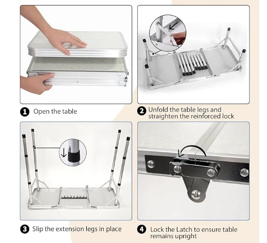 Ny latabatra aluminium aluminium portable dia ampiasaina amin'ny latabatra patio na latabatra finday. Mety amin'ny fisakafoanana, piknik, jono, fitobiana ary bbq. Vantany tsy dia ampy hahatratrarana ny zavatra ilainao isan'andro.zhejiang outdoor ny vokatra any ivelany Co., Ltd., dia misy sosona fitehirizana tsara tarehy eo ambanin'ny takelaka. Roa s-hooks ho mora mihantona bebe kokoa