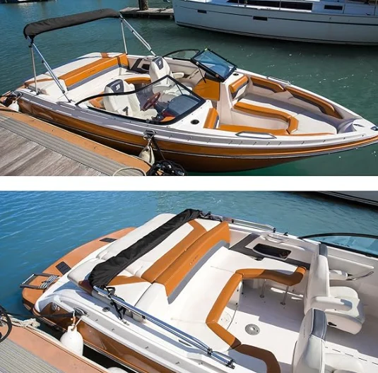 Stainless Boat Bimini Top, vita amin'ny Canvas an-dranomasina 600d Polyester Canvas miaraka amin'ny coating Pu avo roa heny, ny boot fitahirizana dia miaro amin'ny tara-masoandro, ny ranomasina ary ny vovoka.